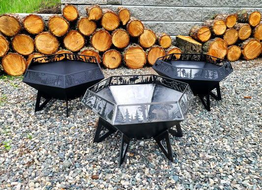 (Set of 3) Metal Sitka Trees With Wood Bases